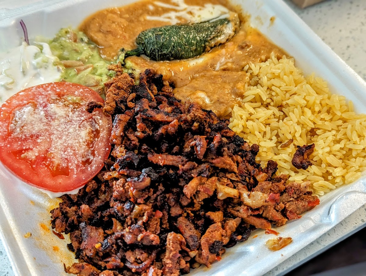 Staff is so fast and kind! I have only really tried their tacos, taco salads and nachos but those have all been amazing. Their rice and beans are a little different than standard but really good. I love that they have a full salsa bar that includes crema, grilled onions/peppers and chili oil unlike a lot of places. This is my go to spot because they're so consistent even the drinks are good! I wish I had a better pic but we're usually too busy eating! 10/10